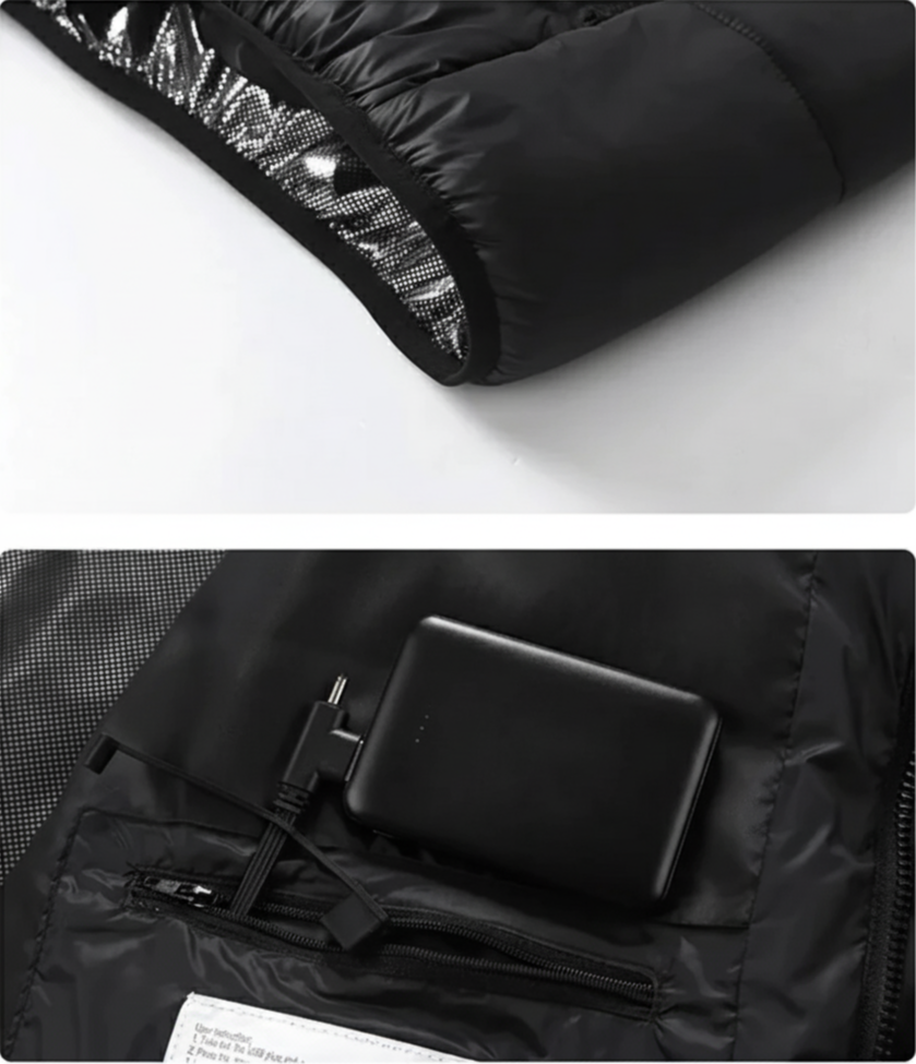 Unplug and remove the power bank, then wash according to the care label. We recommend a gentle cycle and air‑dry for best longevity.