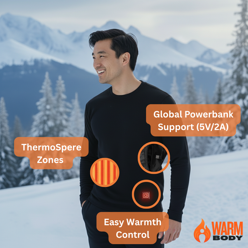 Note: Not all power banks deliver consistent output. To ensure optimal warmth, runtime, and safety, pair your heated gear with our recommended 10,000mAh WarmBody Power Bank (sold separately).